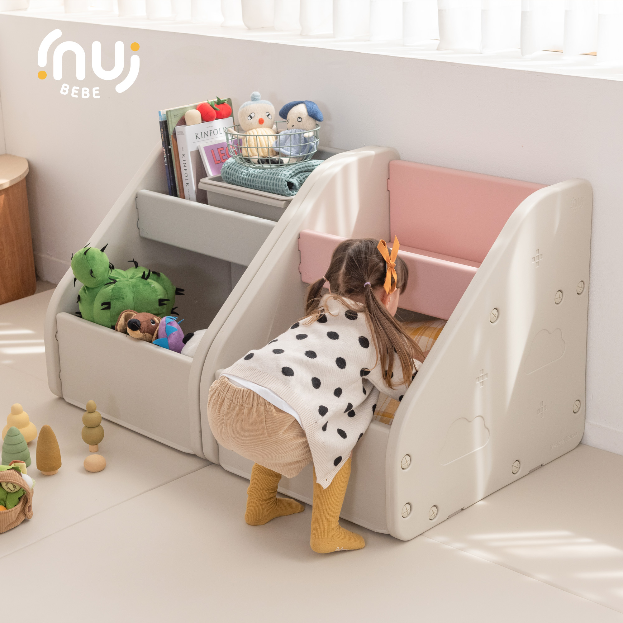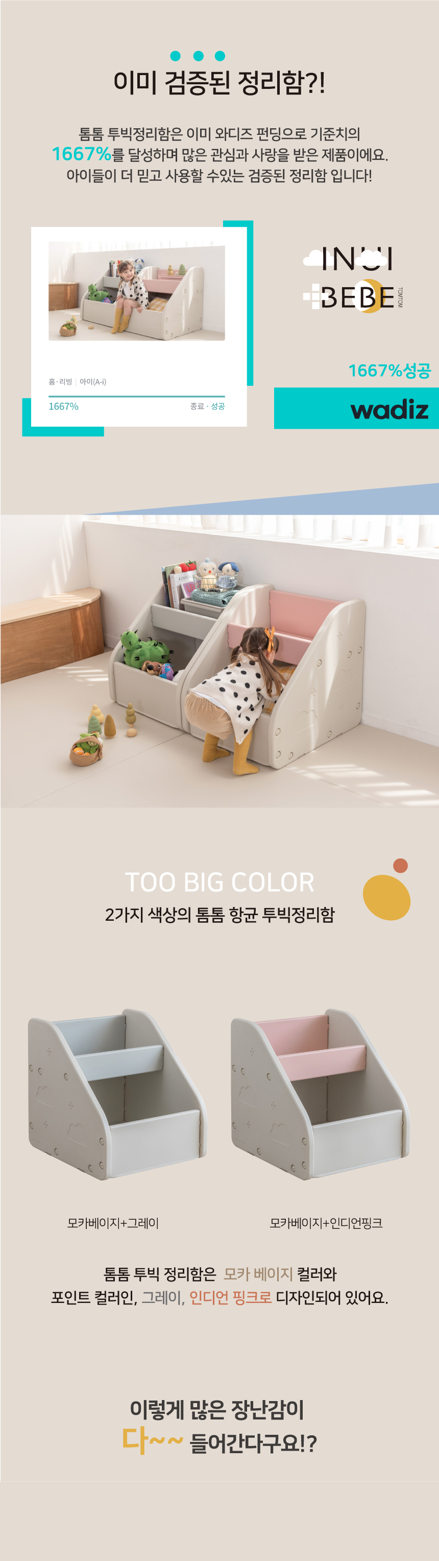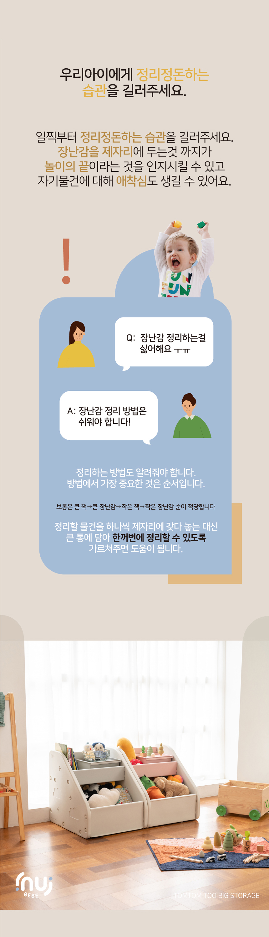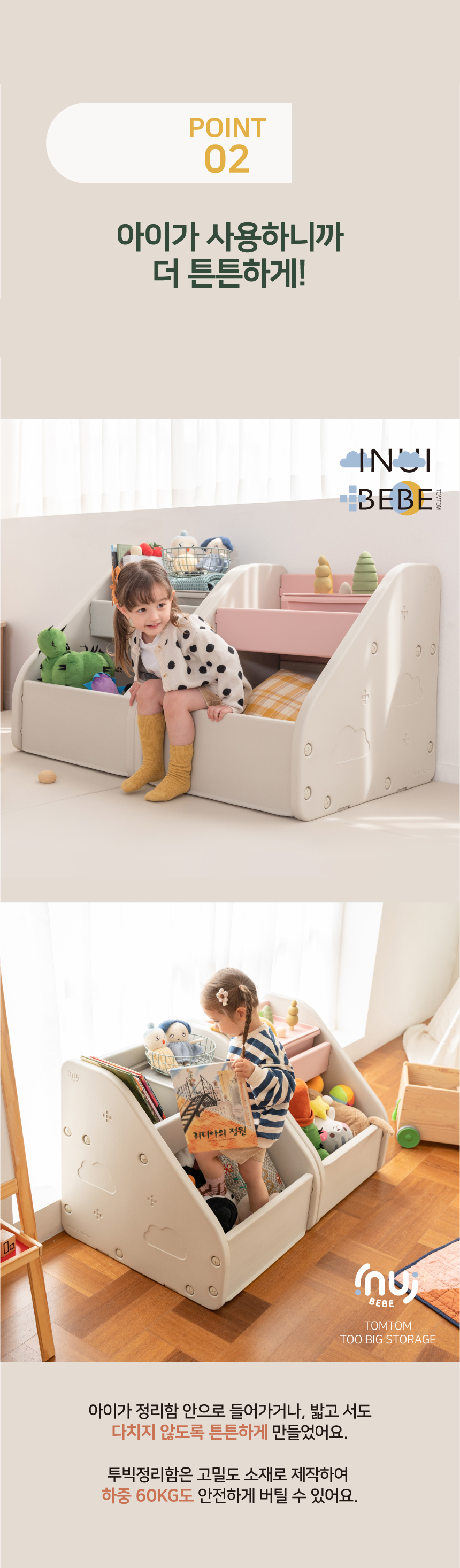 수납력 정말 최고에요 :) 장난감을 다 넣고도 텅텅- 튼튼해서 아이가 잡고 서도 끄떡없어요!!